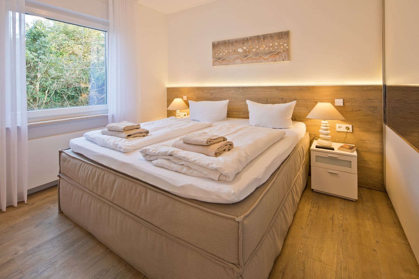 Unsere stilvollen Ferienwohnungen bieten nicht nur eine gehobene Ausstattung, sondern auch eine einladende Atmosphäre, um Ihren Urlaub unvergesslich zu gestalten. Jede Wohnung verfügt über einen großzügigen Balkon, auf dem Sie die frische Nordseeluft in vollen Zügen genießen können. Der perfekte Ort, um den Tag mit einem atemberaubenden Blick auf die Umgebung ausklingen zu lassen.