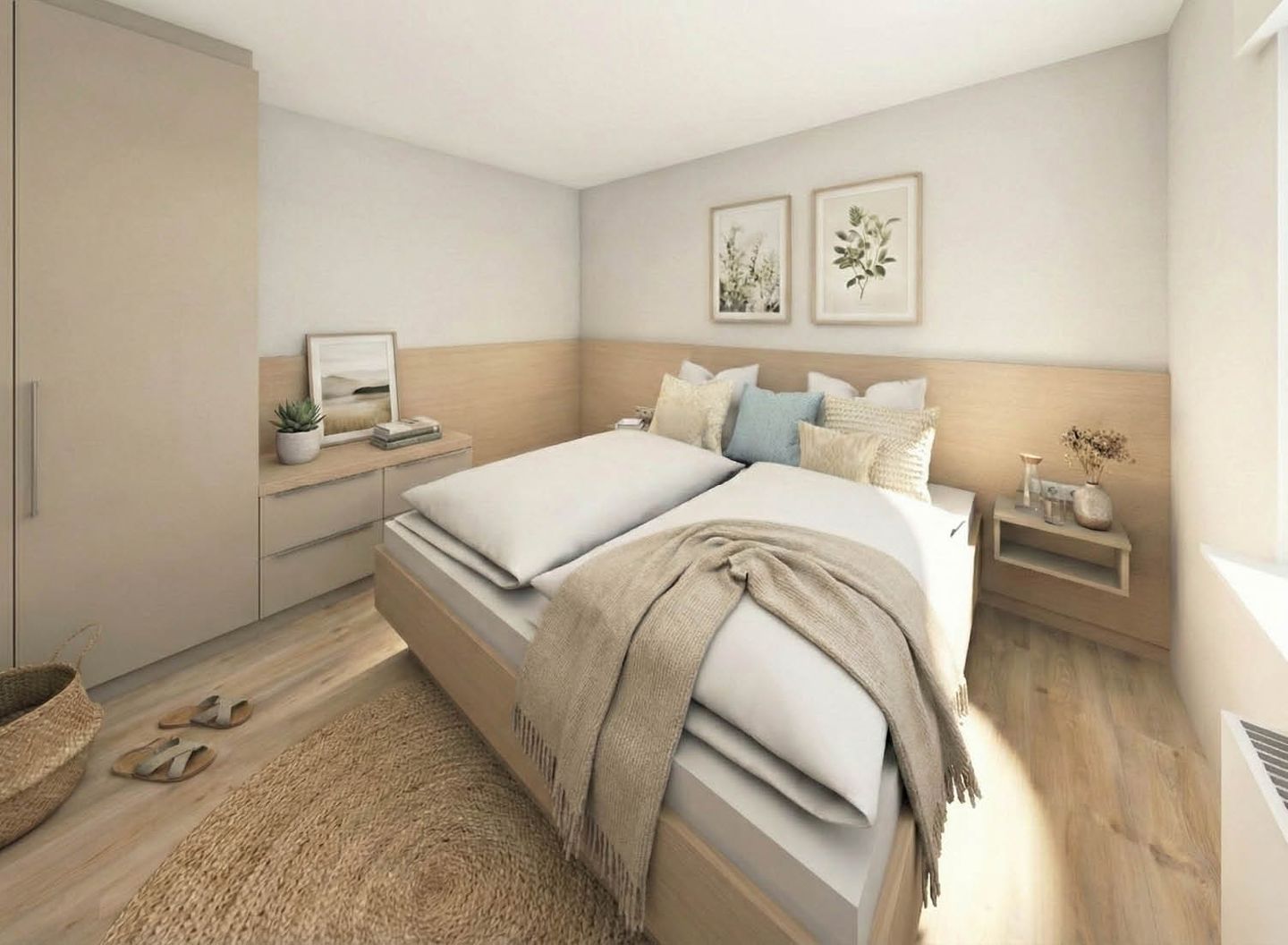 - Separates Schlafzimmer mit Doppelbett und geräumigem Kleiderschrank