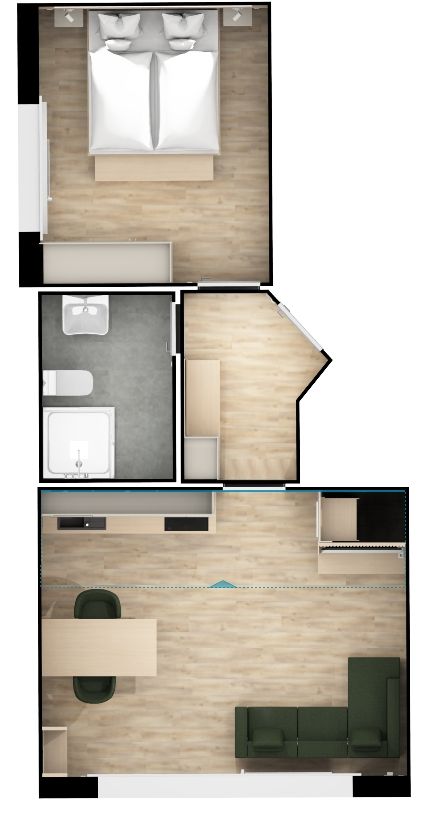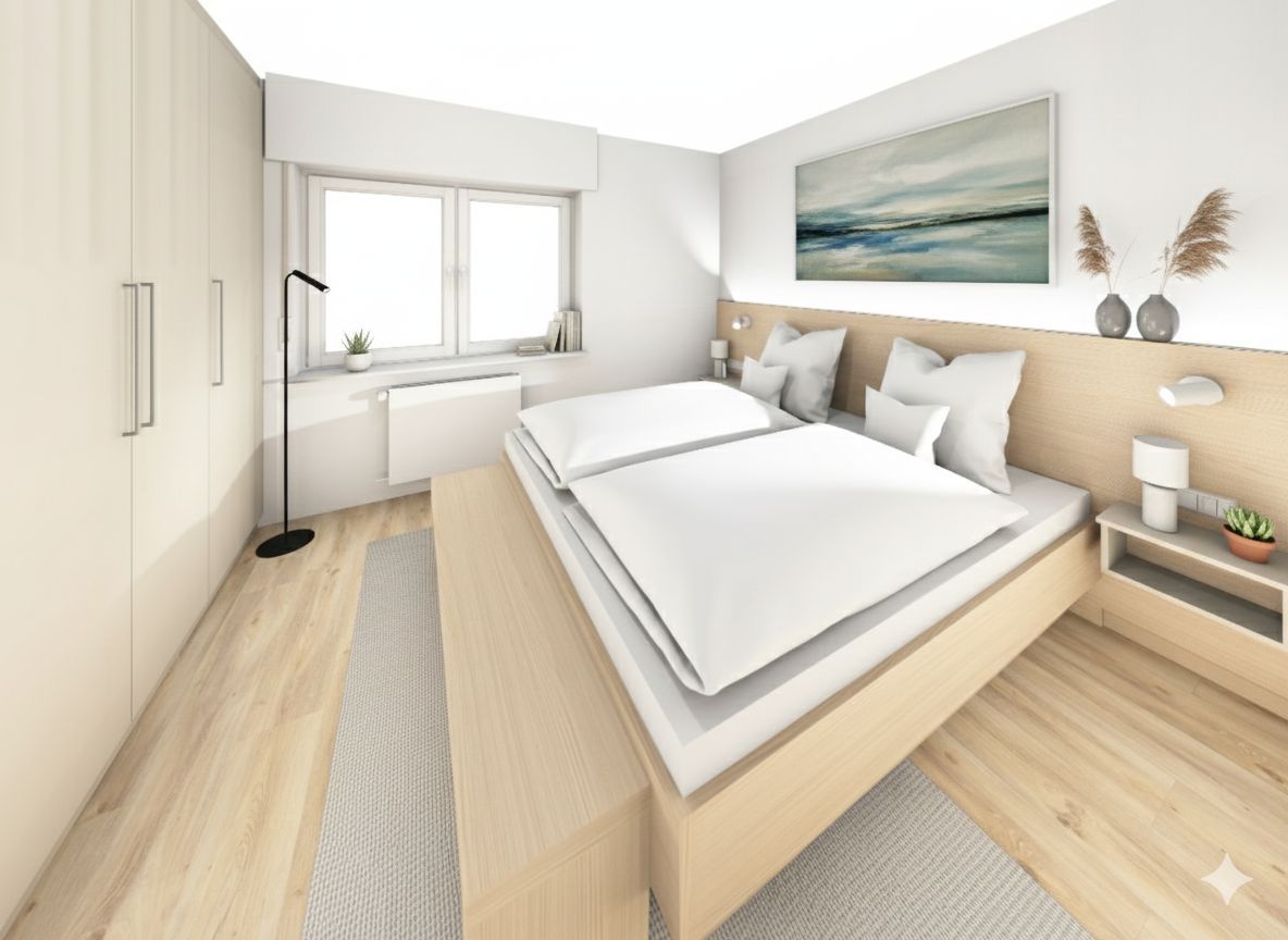 - Separates Schlafzimmer mit Doppelbett und geräumigem Kleiderschrank